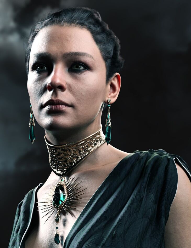 Check out this dark fantasy-inspired set of accessories! Included is a collar, pendant, tikka, earrings, and 3 different rings. The pendant, tikka, and earrings are all rigged for easy posing.