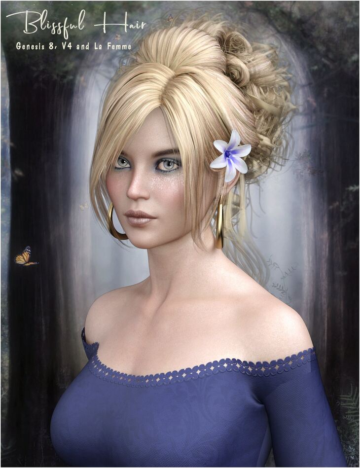 PropsChick and Rpublishing presents Blissful Hair for La femme, V4 and Genesis 8. A stylish updo with props for your rendering needs!