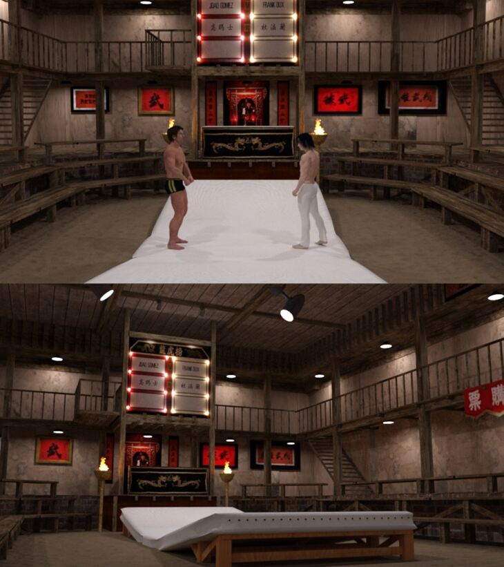 Based on the 1988 Movie Bloodsport starring Jean-Claude Van Damme, this is the Kumite Arena where fighters battle for victory in this Hong Kong Tournament. The rear wall can be removed to allow more distant coverage of the stage.