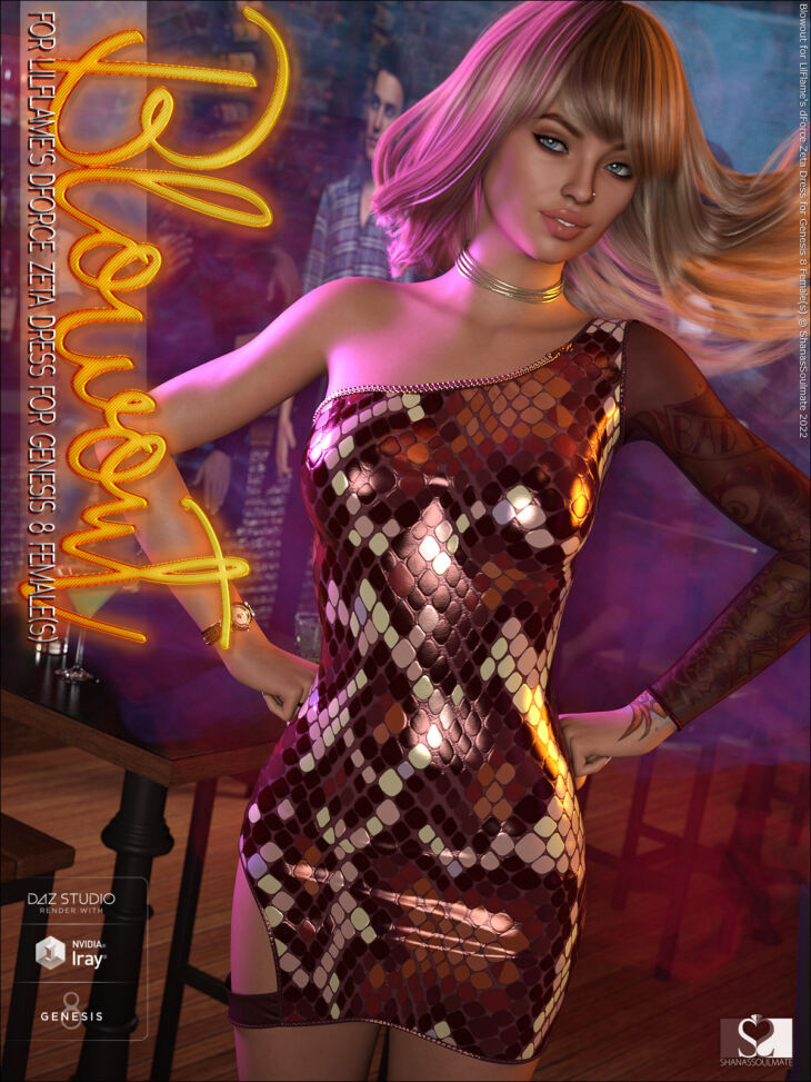 Blowout is a brand new texture pack for LilFlame's dForce Zeta Dress for Genesis 8 Female(s), with this pack you'll get 10 new fully detailed high-resolution texture styles.