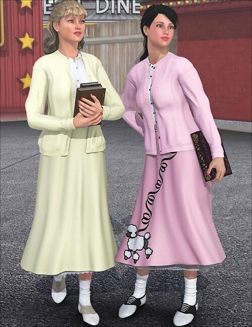 Bobby Soxer includes two complete sets of carefully researched, iconic teen looks for the 3D Everyday 1950 for Genesis Female clothing.