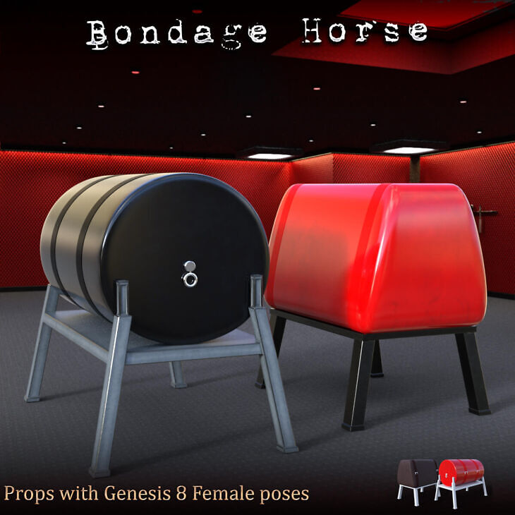 Bondage Horse is made of two props with Genesis 8 Female poses, one for each horse.