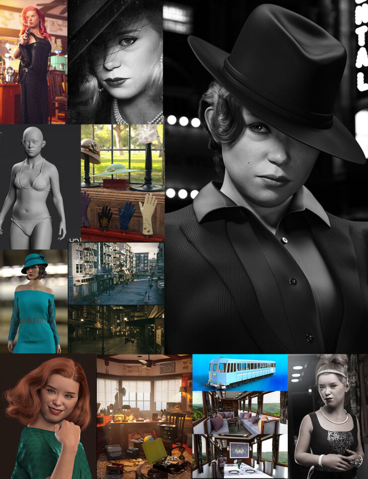 • Vintage Hats and Gloves for Genesis 8 and 8.1 Females