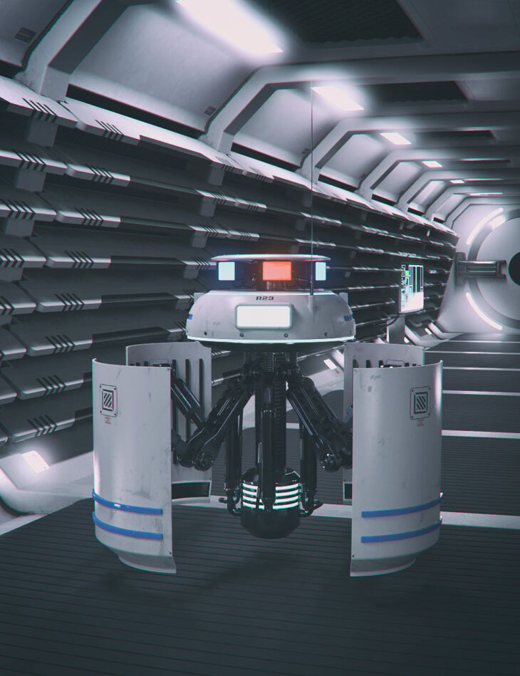 Bot Defender R23 is the ideal companion for all your sci-fi characters and scenes. With 6 material presets and 4 pose controls, it's very easy to adapt to your own needs.