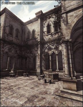 The set features authentic vaulted ceilings and intricate stone archways that lead out into a small courtyard. In this area is a small wishing well surrounded by a pair of stone benches.