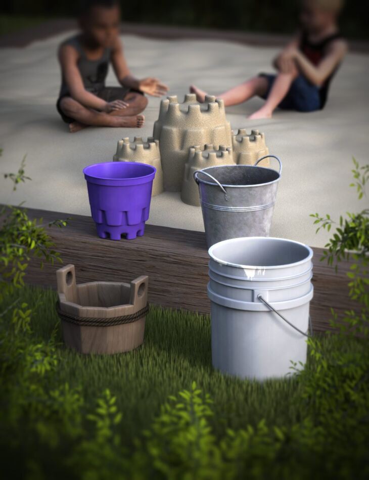 Some people use buckets to catch the milk from their dairy cows, others use it to store paint. Still others gather water from a well, and the youngest among them use buckets to make magnificent castles in the sand. Now you can, as well with this 3D graphic design set.