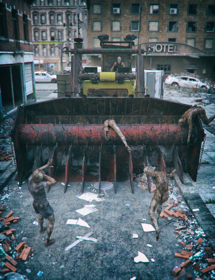 Bulldozer The Beast is a massive machine built to withstand the carnage of an impending zombie apocalypse.