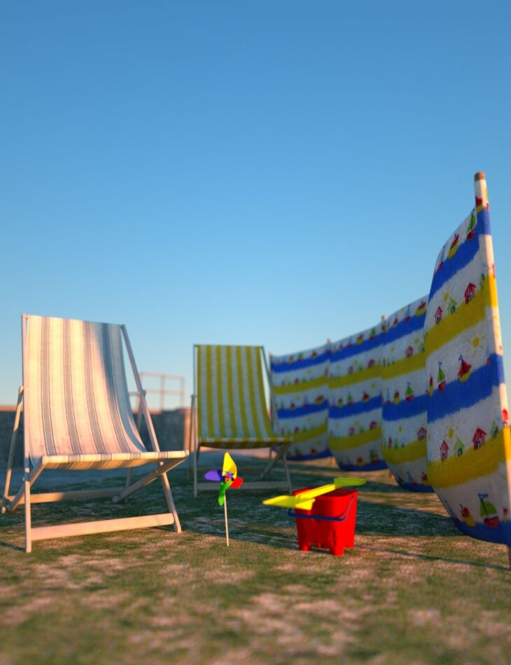 Have some summer fun with this beach promenade 3D environment complete with seaside props including a set of children's toys.