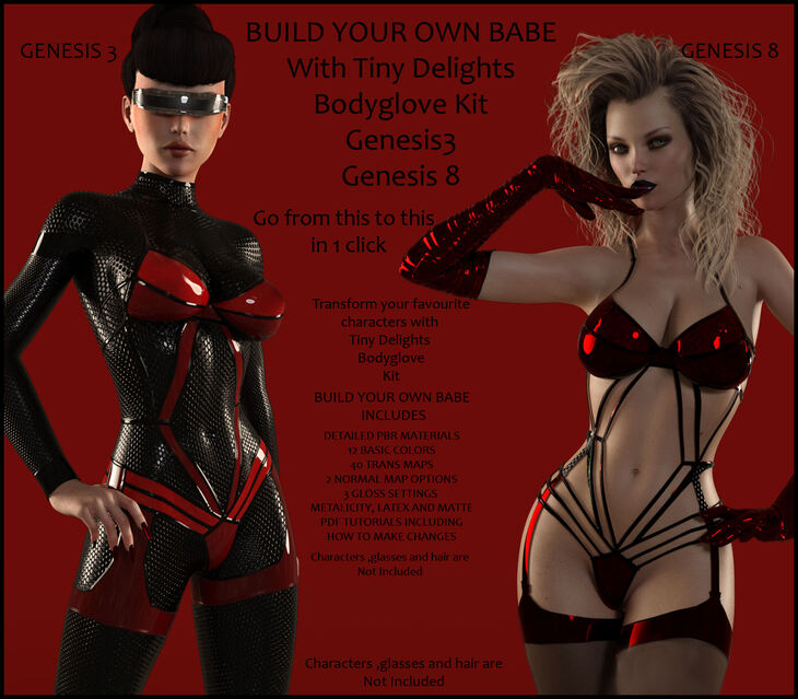 Build Your Own Babe G3-G8 Tiny Delights Bodygloves is a set of PBR high quality, detailed bodygloves for Genesis 3 and Genesis 8 Female.
