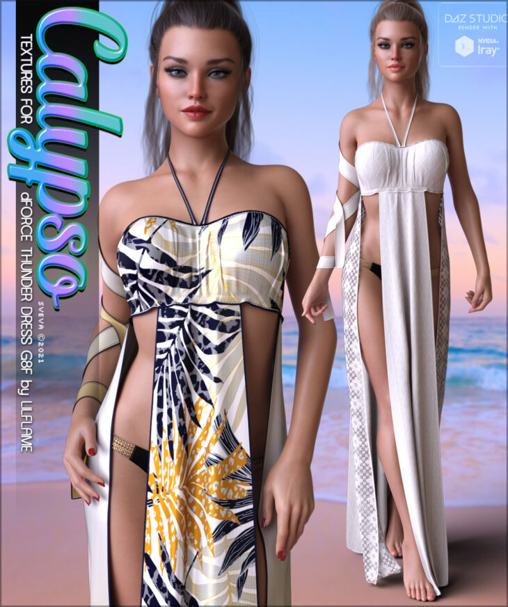 Calypso Textures for dForce Thunder Dress G8F by Lilflame.