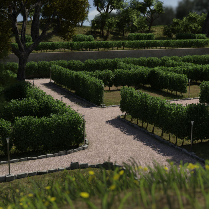 The Camping Ground Kit is a square ambient for the creation of a camping field with Tent Pitches spaces, nature elements like grass, trees and bushes, and a modular hedge system.