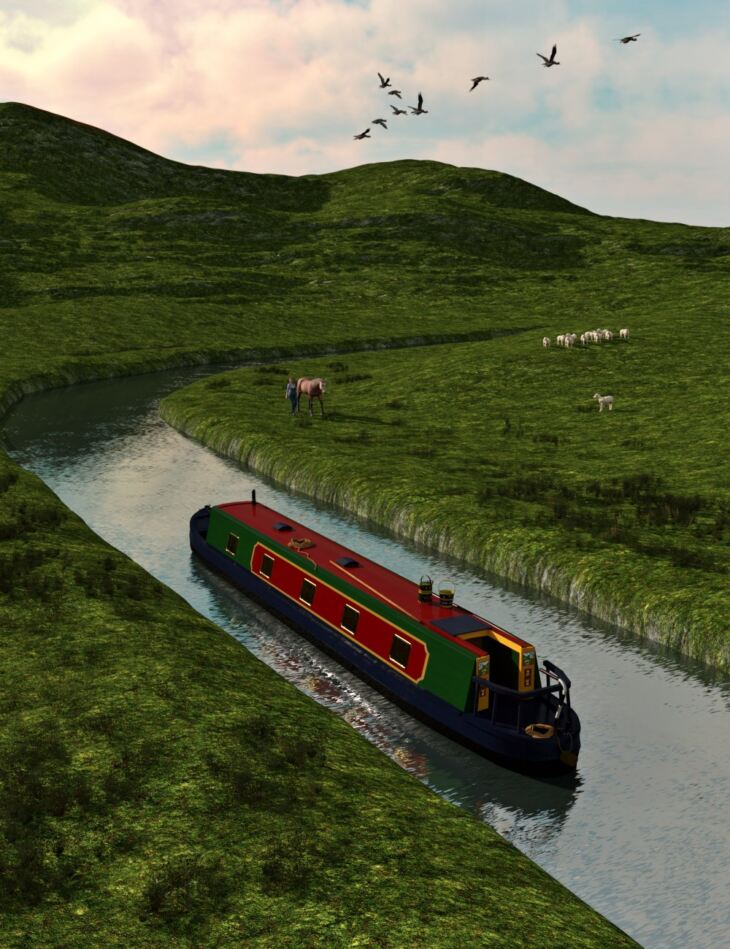 This painted narrowboat and props can be used alone or in the TerraDome 3 environment to create an instant canal backdrop.