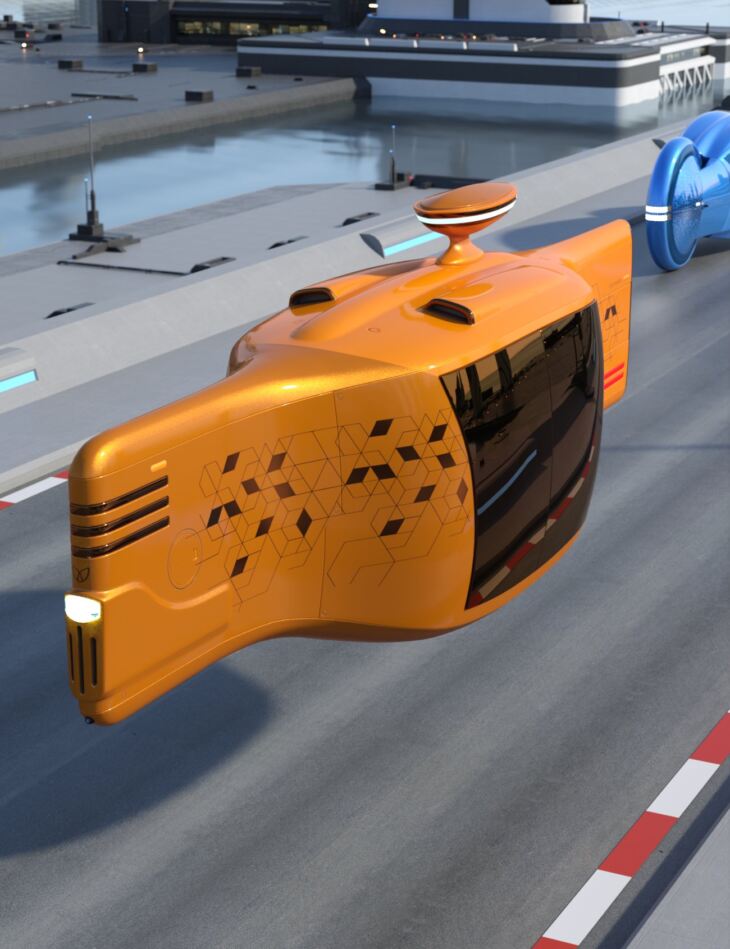 Car Levante is an automatic flying car. The four-seater car body is made of carbon fiber in a futuristic style. The car has four anti-gravity engines and one rear traction. The set includes eight exterior and interior colors. Genesis 9 passenger poses are also included.