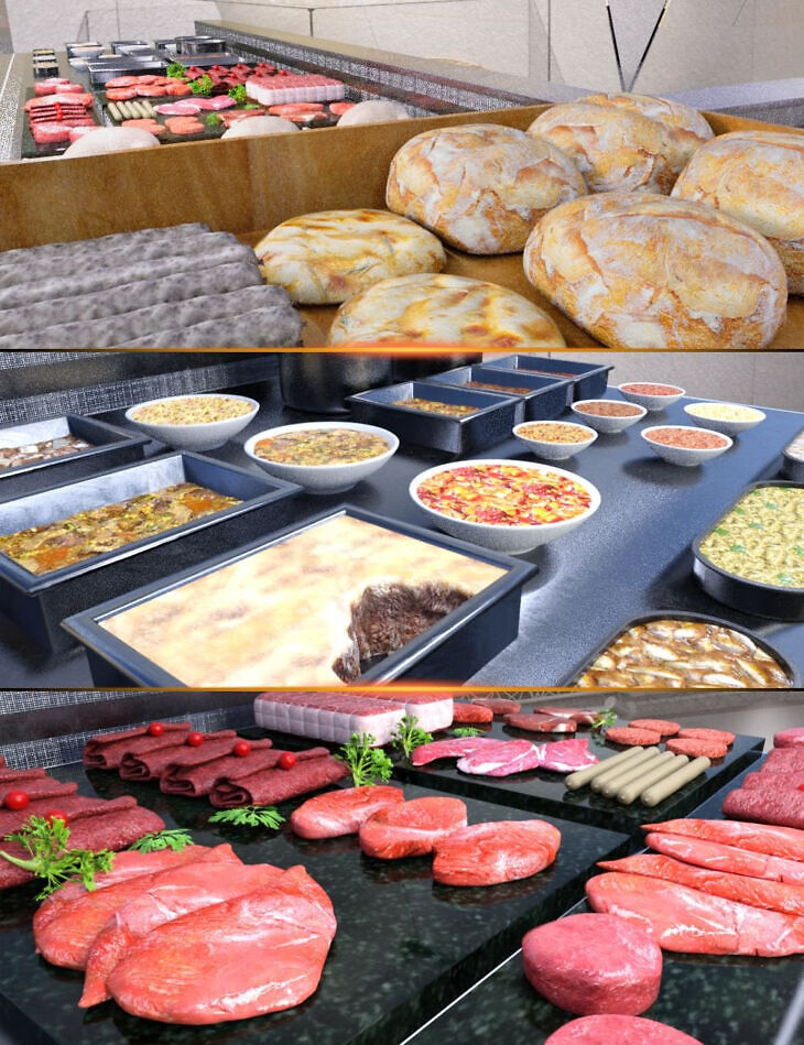 Bring your scene to life with this versatile set of catering props—perfect for restaurant kitchens, buffet lines, event catering, and modern grocery environments.