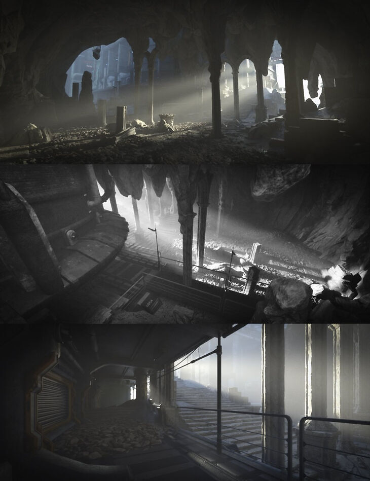 Caved Beneath is a spectacular mash between Stonemason's Urban Future 3 and The Temple Below with additional scanned assets and stunning lighting and fog effects.