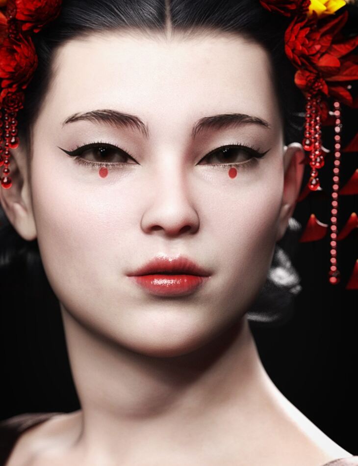 CB Anhe HD for Genesis 9 has a selection of contemporary LIE makeup, as well as a collection of traditionally-inspired makeup options that can be used solo or combined to create your own unique look.