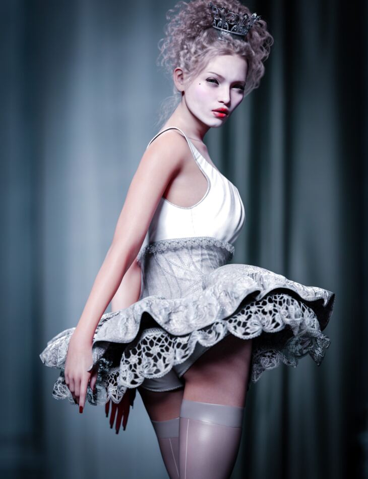 CB Etta Clothing Set for Genesis 9 is a 6-piece set, inspired by the Court of Versailles with a twist. Jaquard fabrics are mixed with silk and lace in pastel shades for a soft, beautiful look.