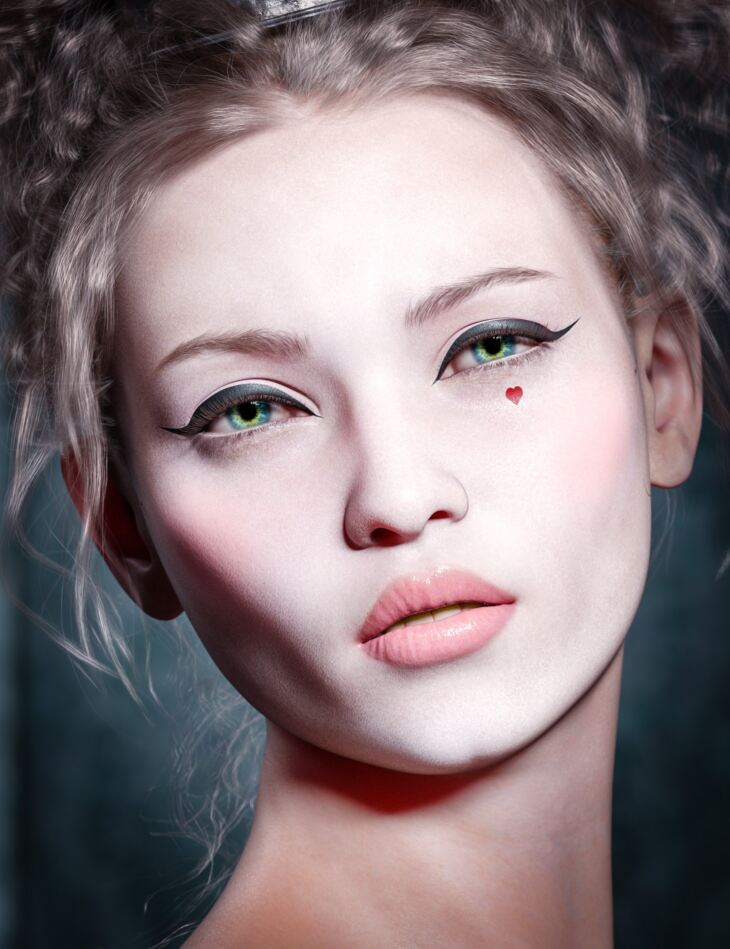 CB Etta HD is a custom-sculpted level 3 HD character with LIE makeup, both contemporary and light fantasy, with optional white face powder base and beauty mark detailing.
