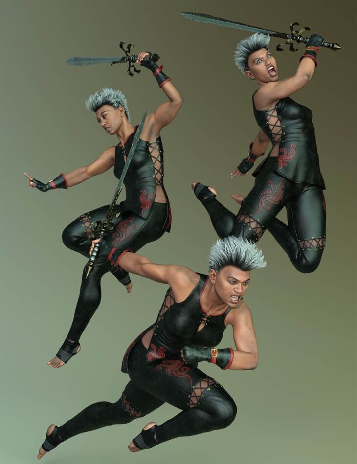 CDI Assassin Poses for Noska 8.1 includes 20 ninja-inspired poses with 5 compelling expressions for Noska 8.1 and Genesis 8.1 Female.