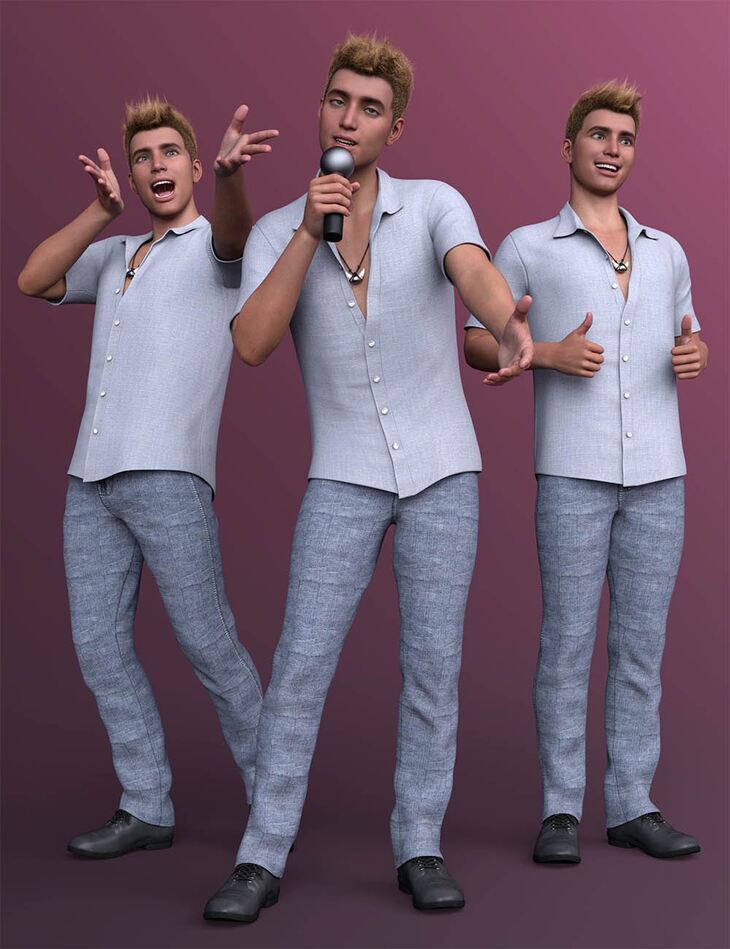 CDI Comedian Poses for Genesis 8.1 Male includes 20 fun poses and 6 quirky expressions for all your standup and photo-op skits.