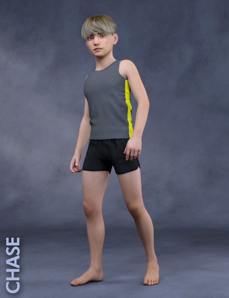 Chase is a high quality handsome teenage boy for Genesis 3 Male. He is perfect for your everyday teenager or young child. Chase comes with 3 different shapes (default, younger and an older boy), 4 partial facial morphs and lots of material presets for Iray and 3Delight.