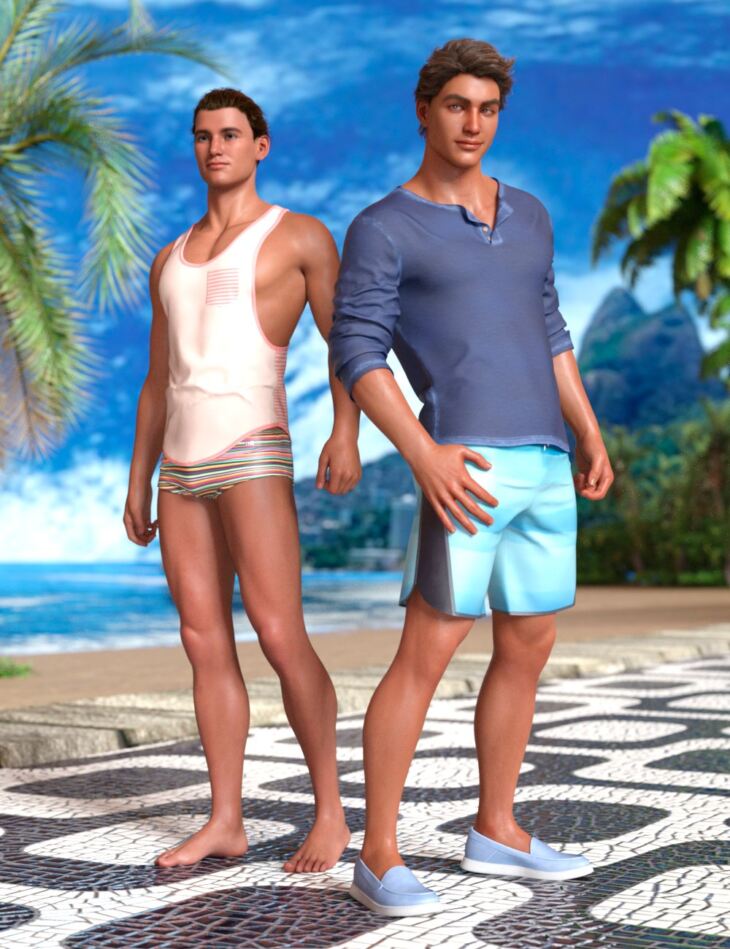 Chasing Summer I is an ideal outfit for your Genesis 8.1 Male character if you like summer and the beach regardless of the time of year.