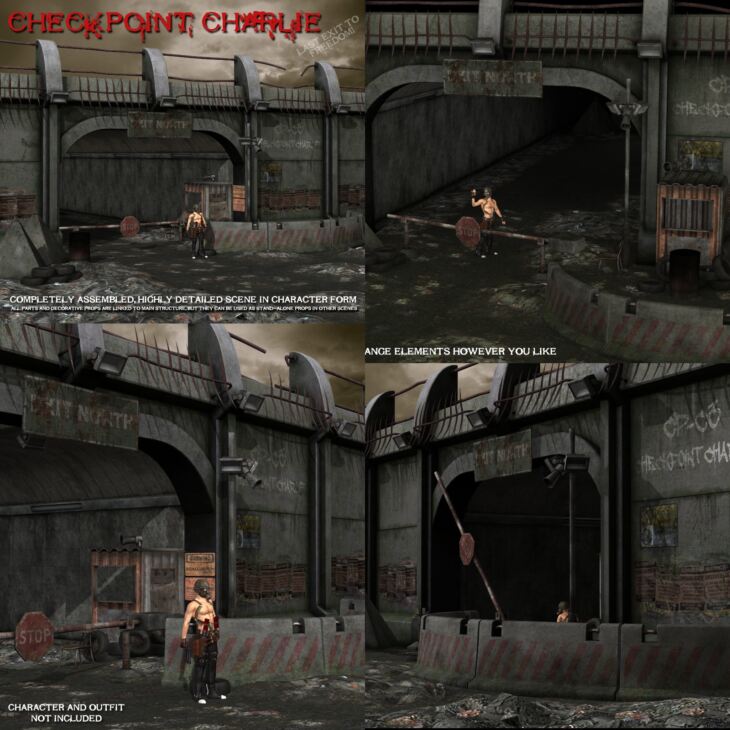 Large section of wall and tunnel are main structure for the scene. In addition, there are many decorative props linked to main structure. Whole scene is loaded from character library. Decorative props can be moved around or deleted (if you don't need them). You can also store props in your props library and use them in different scene.