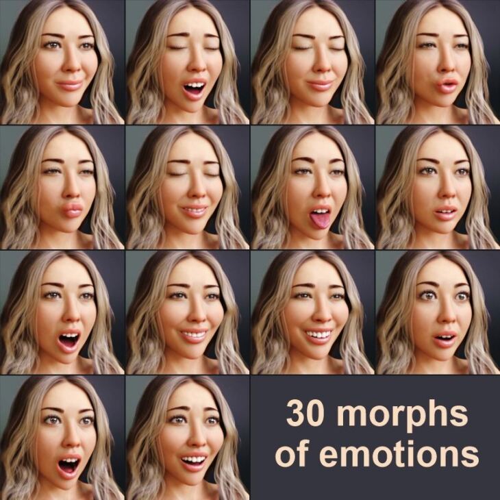 This professional emotions specialy done for Chinese Model,but can be used seperatly. Includes 30 new emotion morphs.