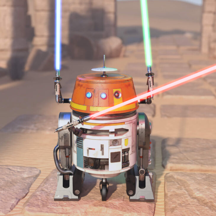 NOTE: Lightsabers not included, and if you have any product with lightsabers, keep them away from Chopper!