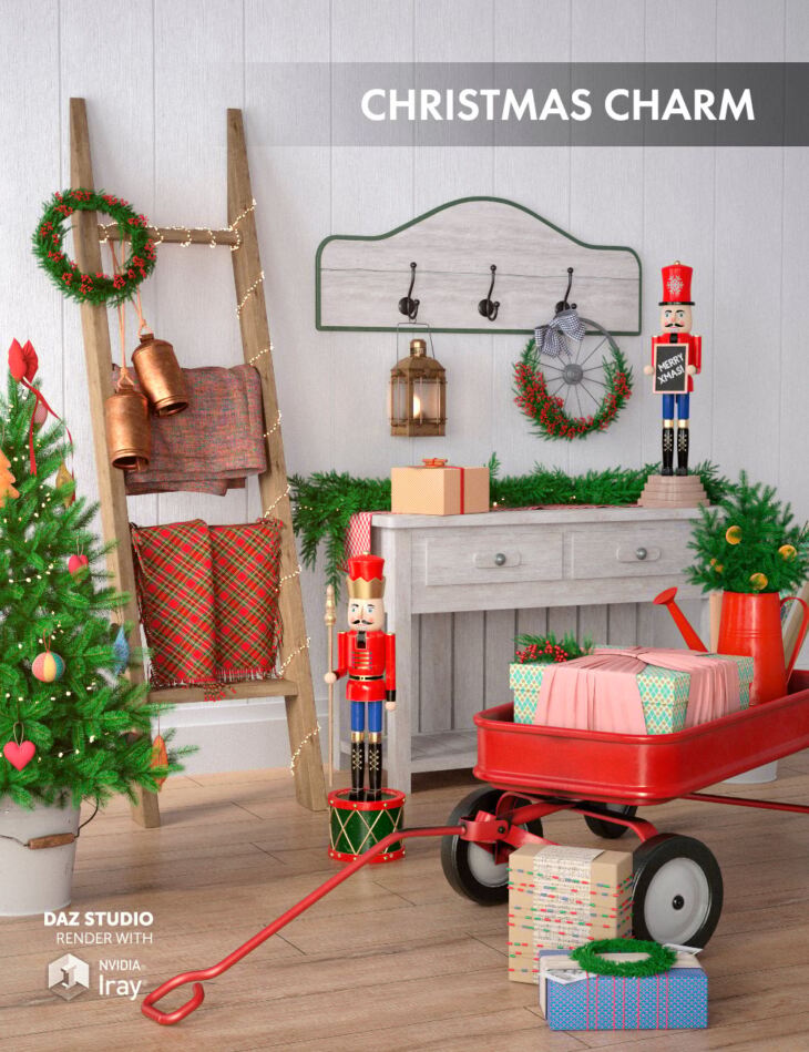 Christmas Charm is a set of 19 charming props that prettify any Christmas scene. Create fabulous indoor or outdoor scenes with a collection of seasonal holiday props.