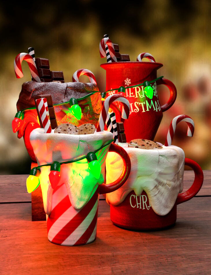 To top it off, the set also includes poses compatible with Genesis 8 Male and Female characters, so you can pose your own holiday scenes with these fun mugs.