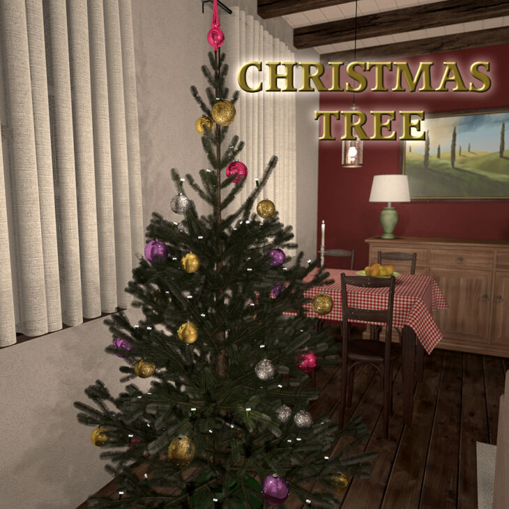 This is a realistic Christmas tree prop for Poser. It comes with a collection of material pre-sets to change the color of the balls/baubles.