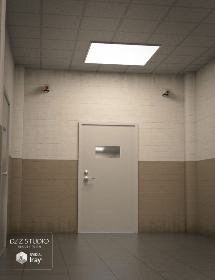 Confinement Corridor is a prison theme interior scene with cameras. All doors are pose-able. Optimized for Daz Studio 4.9, includes both Iray and 3delight versions.