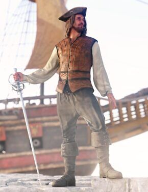 Corsair for Genesis is a complete clothing and props set for DAZ's Genesis. It includes three color schemes to add versatility to your renders.