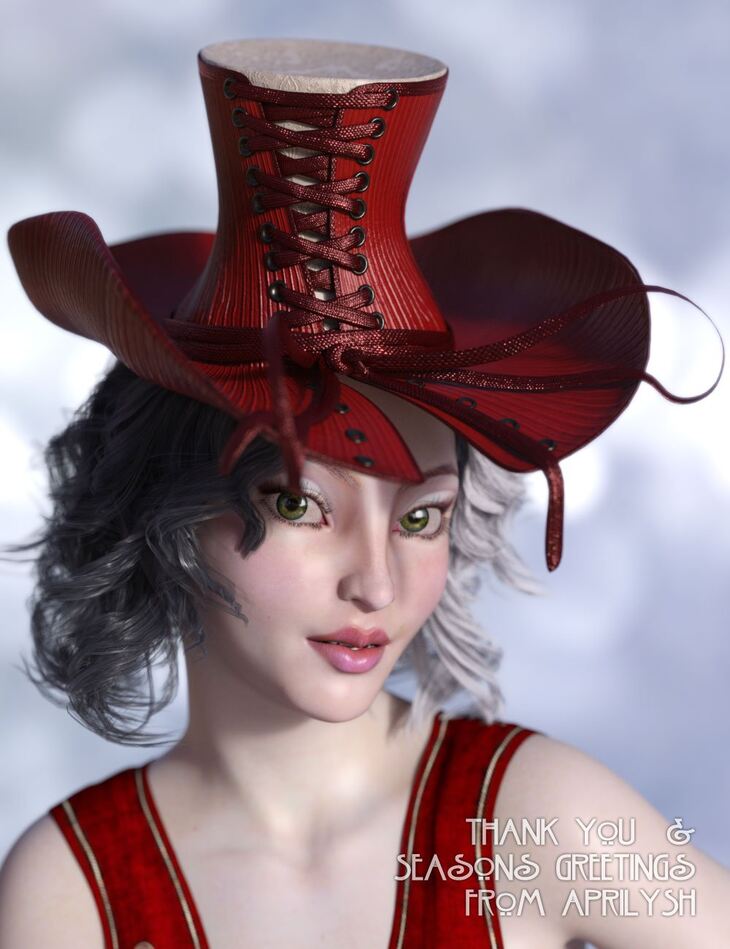 Corset Hat smart prop in Daz Studio (.DUF) and Poser formats (.PP2). Including Iray, 3delight and Firefly material presets. Thank you and Seasons Greetings 2015 from AprilYSH!
