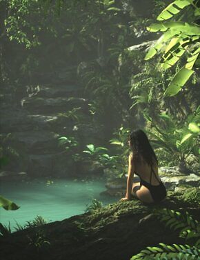 In the heart of a Baltic Pine forest is a Creek with a fallen log across the water so bush-walkers can easily traverse the creek from one side to the other. There is a cliff face to the north and to the south is forest expanse.