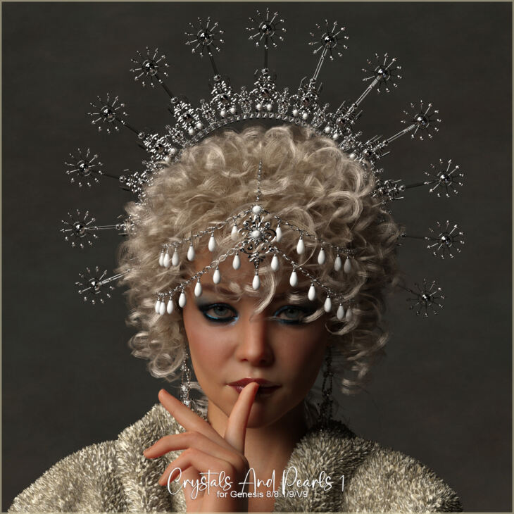 The set consists of a two-part tiara and a pair of earrings for Genesis 8, 8.1 and 9 Females.