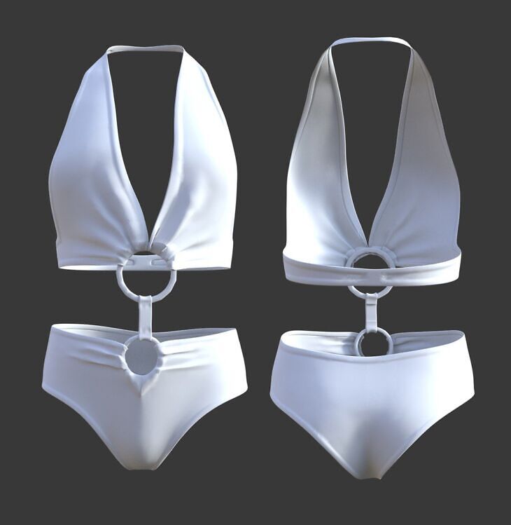 CS Swimsuit for Genesis 9 Female Clothing for Genesis 8 Females Featuring a daring deep-cut neckline, bold ring connectors, and high-waisted bottoms, this outfit balances elegance and allure.
