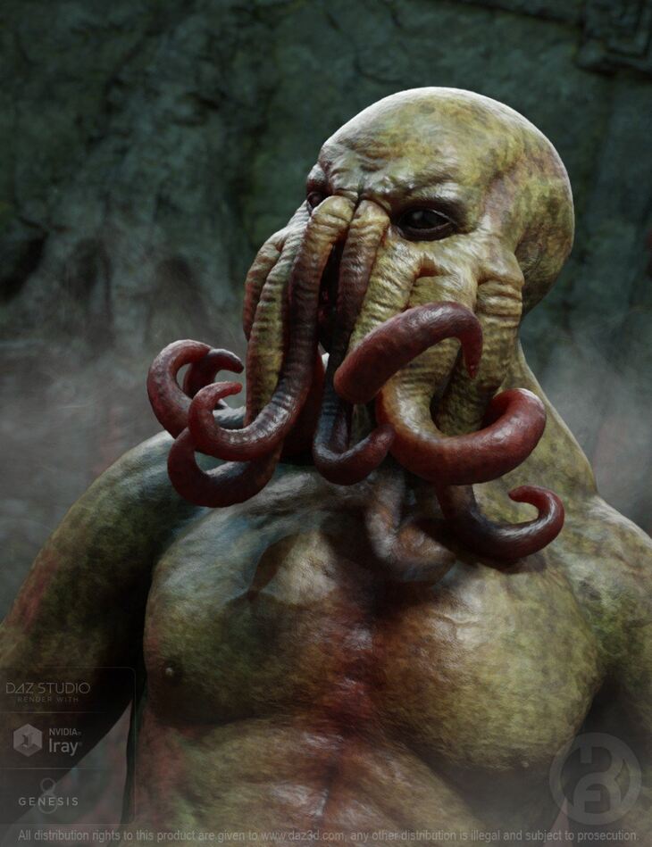 The Cthuloid for Genesis 8 Male comes complete with custom crafted High Definition Morphs and Highly detailed Textures for the utmost realism, as well as five Eye Materials, Two Full Body Textures and Posing Dials for the tentacles.