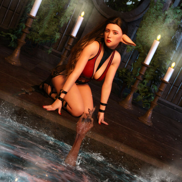 Erin is a really unique character.Her fantasy ears, for which there are different materials, are the eye-catcher in every render. No matter if high fantasy, sci-fi or cyberpunk genre. But her pretty face, captivates with classic beauty, so she is an eye-catcher even without her fantasy ears.