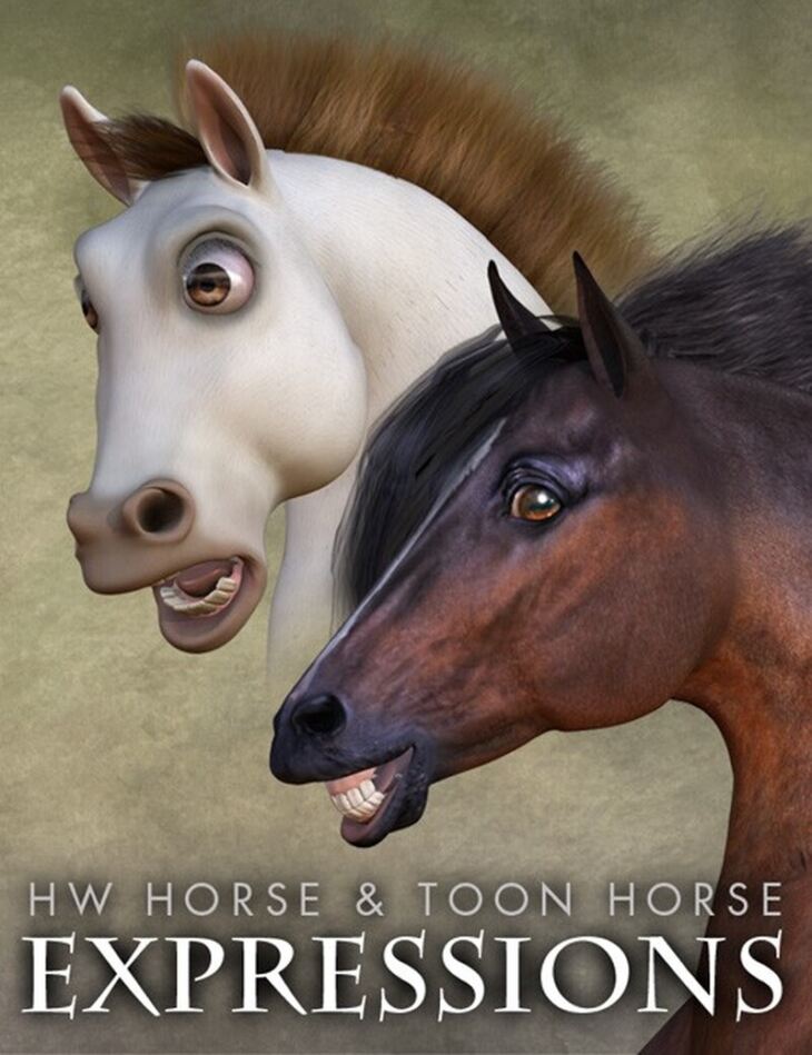 Bring some facial expression to your HiveWire Horse poses and renders! From realistic to more exaggerated "toon-y" styles for all kinds of moods for your Horse.