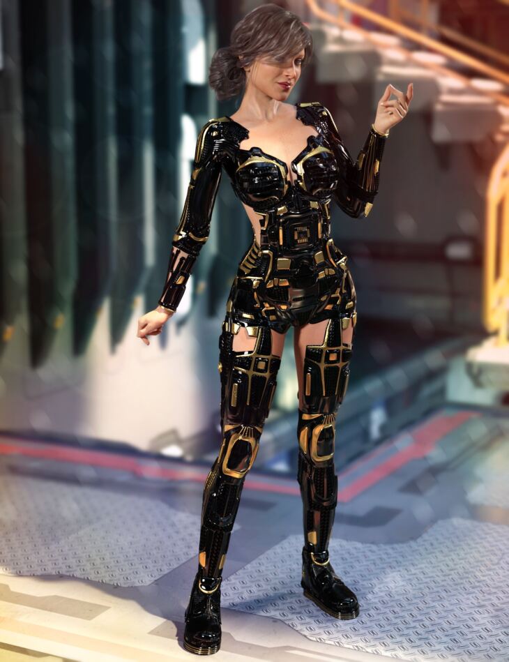 The Cyber Guardian Outfit for Genesis 8 and 8.1 Female is a 6-piece outfit.