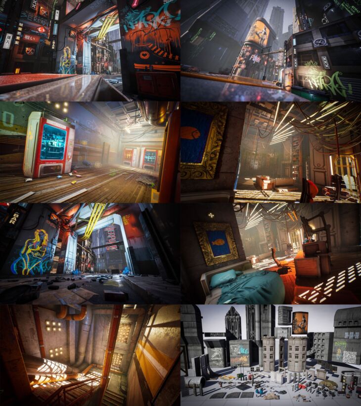 Cyberpunk Environment Bundle contains three cyberpunk themed environments in one package for better total value. You can build custom levels in realistic and cyberpunk/sci-fi style. All packages are AAA game quality and have PBR materials. Have large number of props, materials and textures for great customization.