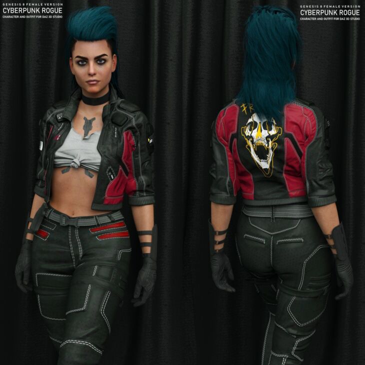Cyberpunk Rogue Outfit and Character for Genesis 8 Female this pack including: