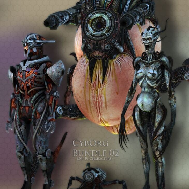 SCI-FI CybOrg (Cybernertic Organism) Bundle 02 characters for Poser/Daz Studio. Bones based on V4 and easy to pose.