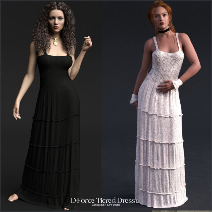 D-Force Tiered Dress for Genesis 8 and 9 Females