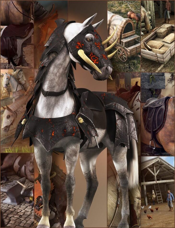 The DAZ Horse 2 Pro Bundle is by far the best value for acquiring the exquisitely modeled, rigged and textured DAZ Horse 2. This bundle includes everything in the DAZ Horse 2 base product, everything in the DAZ Horse 2 Starter Bundle AND 5 additional breed shapes, additional texture sets, poses, armor sets, saddle textures, wagon and hand-cart accessories and more.