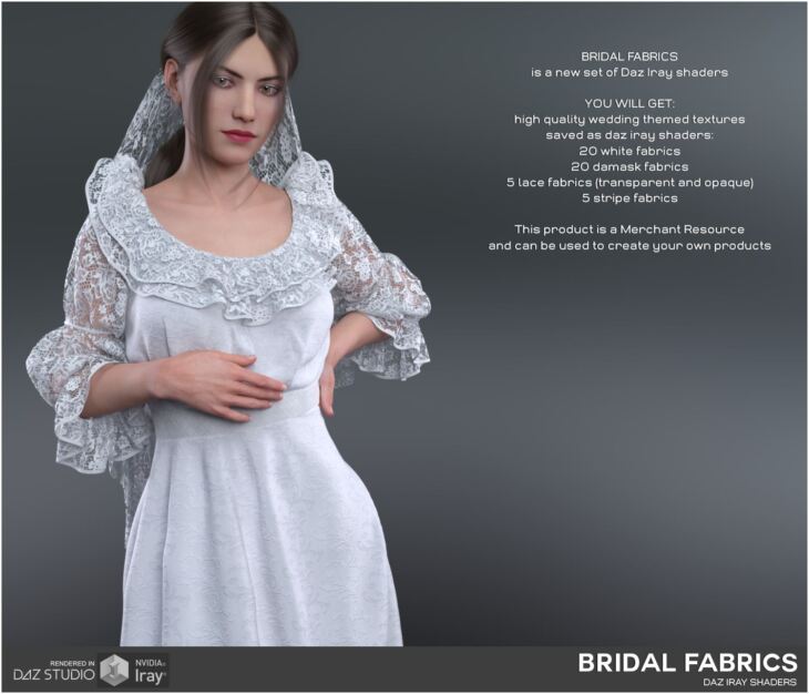 Daz Iray - Bridal Fabrics - high quality shaders for Daz Studio Iray.