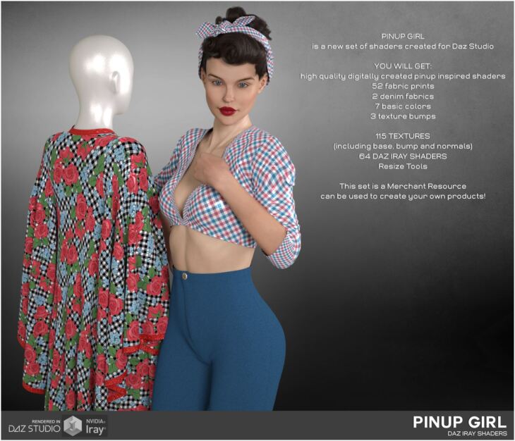 Daz Iray - Pinup Girl - merchant resource, that can be used to create your Free/Commercial projects. You will get quality daz iray shaders created using fabric photo resources.