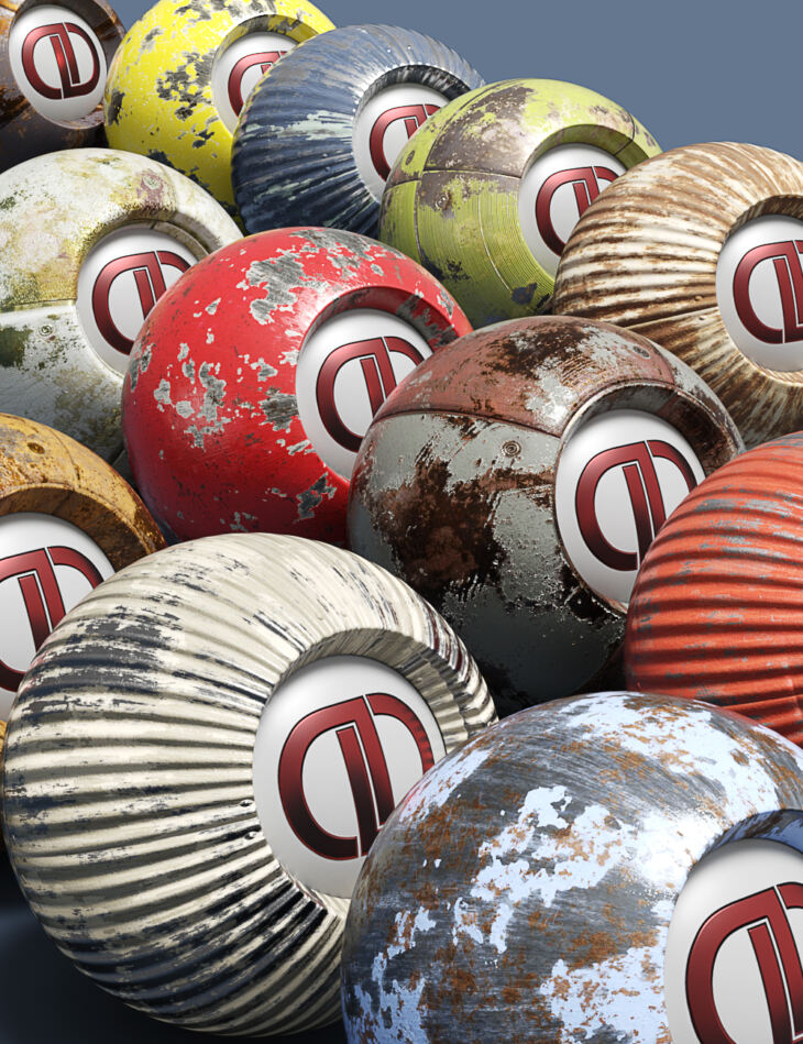 DD PBR Painted Metal Shaders for Iray Vol 1 brings you 36 unique presets in Brush Painted Metal, Painted Metal Corrugated Sheets, and Painted Metal Uneven Plates. Included in the pack are a variety of colors, plus varying degrees of paint wear and metal aging including rust. With all of these options, we literally have you covered.